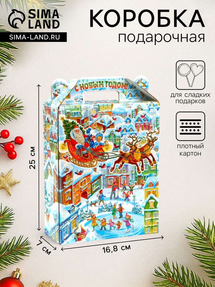 Подарочная коробка новогодняя Подарок "Волшебный город" 16,8 х 7 х 25 см. Новый год