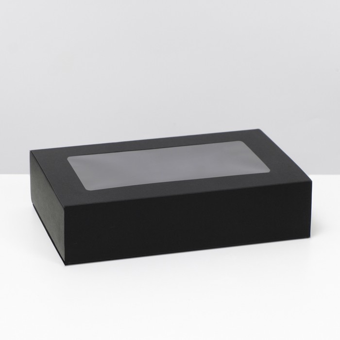 Коробка складня, пенал, с окном, чёрная, 25×16×6 см