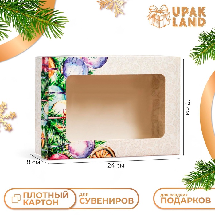 Коробка подарочная новогодняя складная, крышка - дно, с окном «Новогоднее украшение» 24×17×8 см