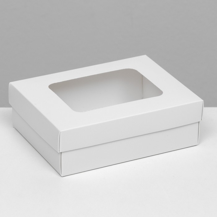 Коробка подарочная складная, упаковка, крышка - дно, с окном, белая, 16.5×12.5×5.2 см