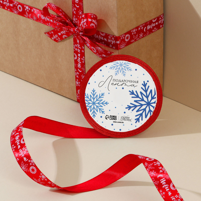 Лента атласная декоративная «С Новым годом!», 1,5 см × 5 м