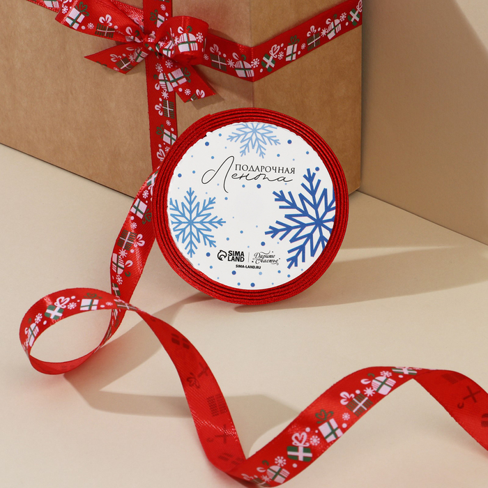 Лента атласная декоративная «Подарочки», 1,5 см × 5 м
