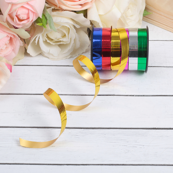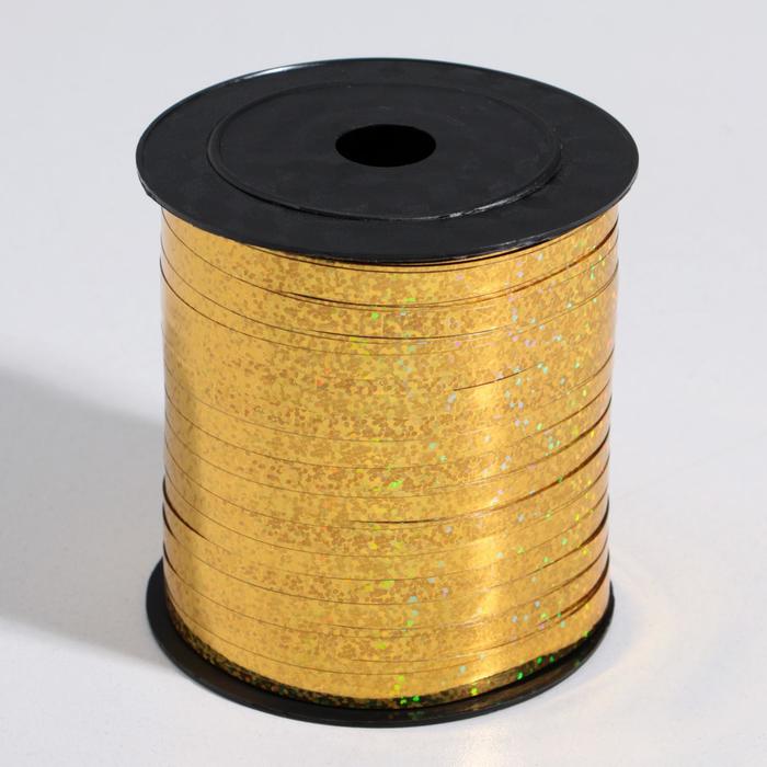 Лента упаковочная для декора, подарков и шаров, металлизированная, золотая, 5 мм × 225 м