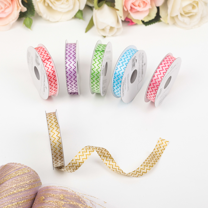 Лента упаковочная для декора и подарков, зигзаг, МИКС, 1.2 см × 5 м