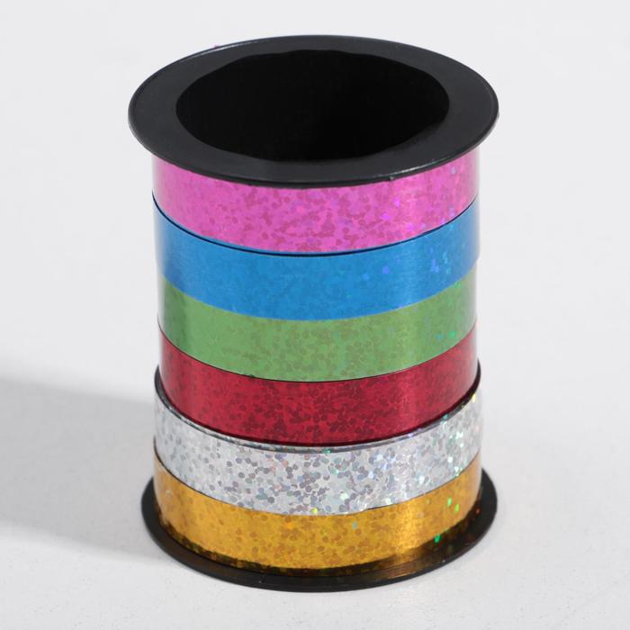 Лента упаковочная голографическая, для воздушных шаров и подарков, ассорти, набор 6 шт., 0.5 см × 10 м