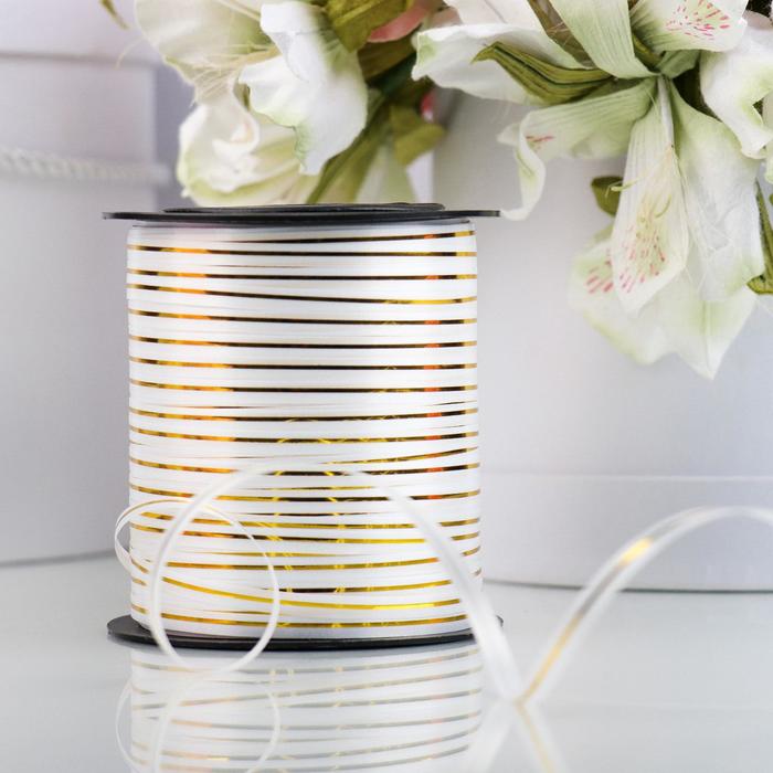 Лента упаковочная для декора, подарков и шаров, белая с золотой полосой, 5 мм × 225 м