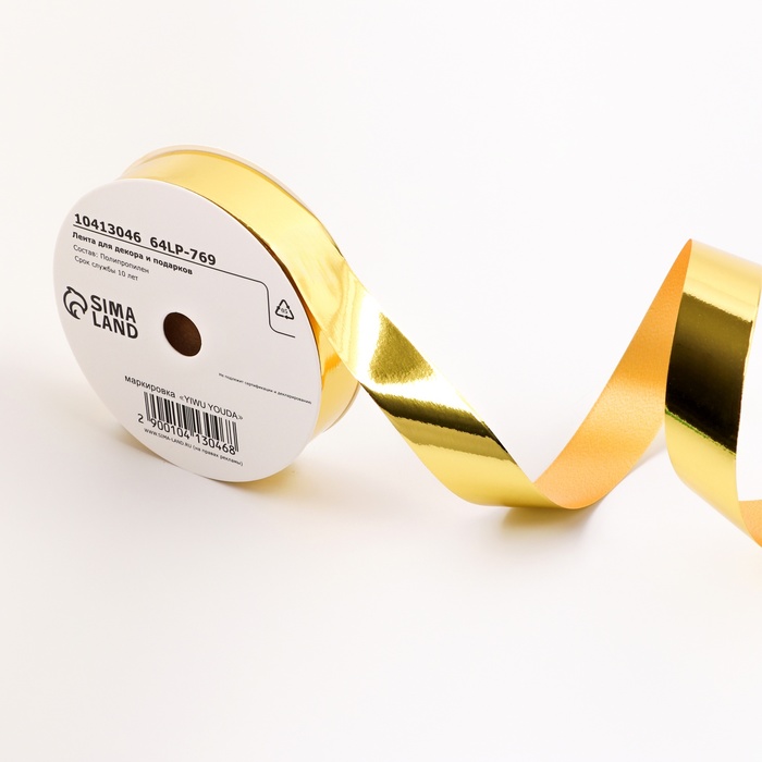 Лента упаковочная для декора и подарков, золотая, 2 см × 45 м