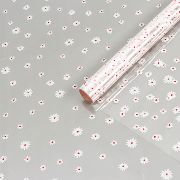 Пленка для цветов "Маргаритки", бело - красная, 0,7 х 7,6 м, 40 мкм, 200 г
