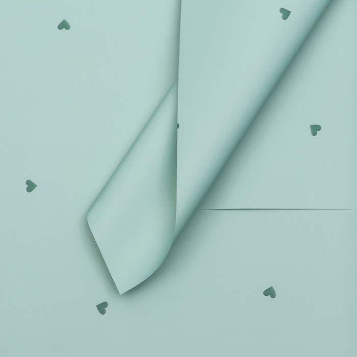 Пленка для цветов и букетов, 57×57 ±1 см, «Сердечки», зелёная, в листах, 65 мкм