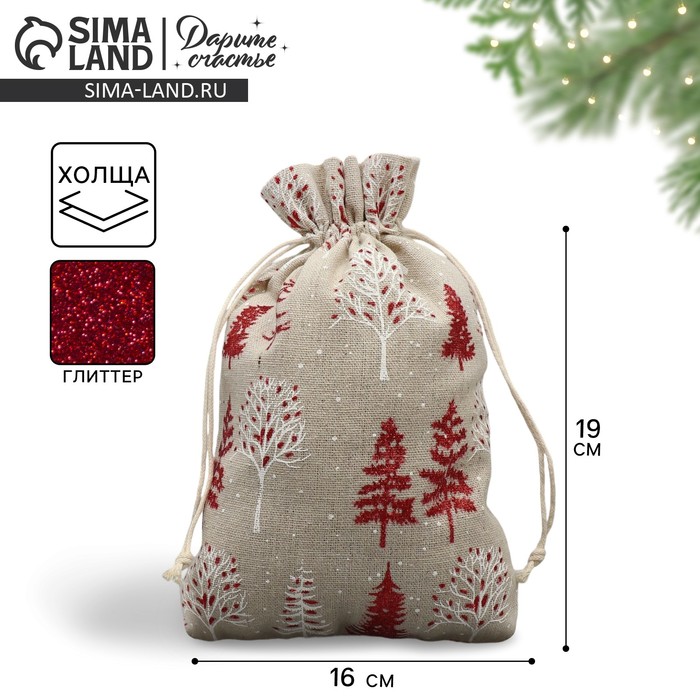 Мешочек подарочный «Новогодний лес», холща, 16 х 24 см +/- 1.5 см