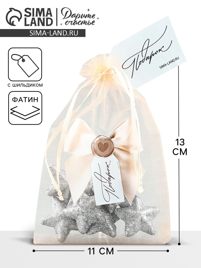 Мешочек подарочный органза «С Новым годом!», 20 х 30 см +/- 1.5 см