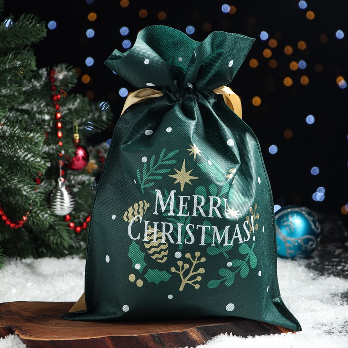 Мешок подарочный «Рождественские мелочи» зелёный, 27×40 см