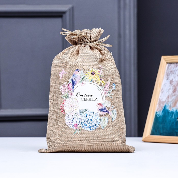 Мешок подарочный с термонаклейкой «От всего сердца» 15.5×24 см