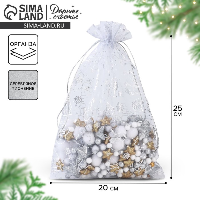 Мешочек подарочный «С Новым годом», органза, серебристый, 20 х 30 см