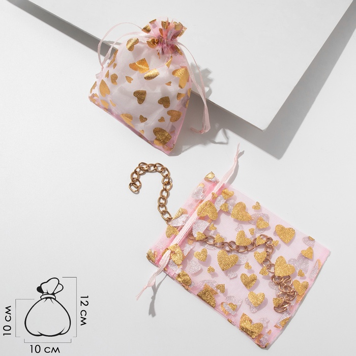 Мешочек подарочный «Сердечки», 10×12, розовый с золотом
