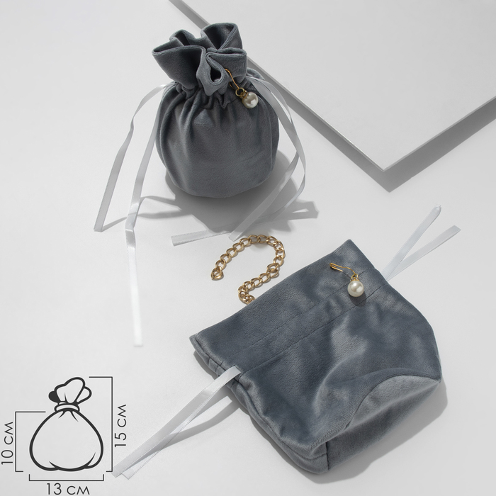 Мешочек бархатный с бусиной, 13×15 см, серый