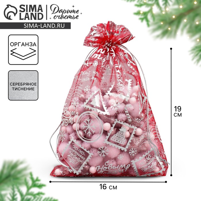 Мешочек подарочный органза «Новогодняя почта», 16 х 24 см +/- 1.5 см