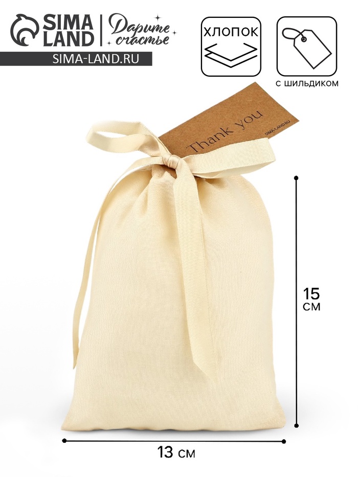 Мешочек подарочный из хлопка «Спасибо», 13 х 18 см +/- 1.5 см