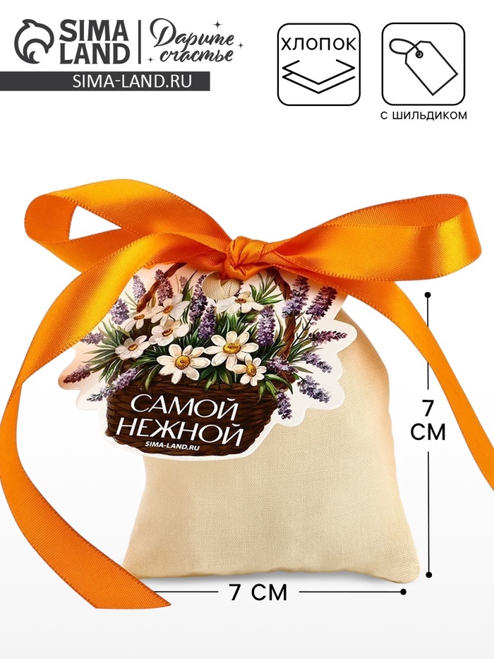 Мешочек подарочный из хлопка «Самой нежной», 7 х 9 см +/- 1.5 см