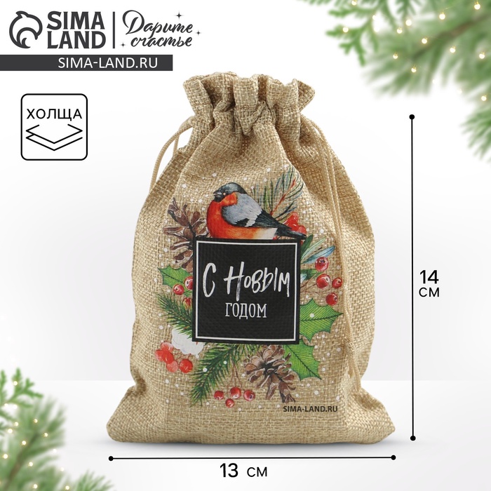 Мешочек подарочный с термонаклейкой «Снегирь», 13 х 18 см +/- 1.5 см