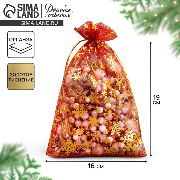 Мешочек подарочный органза «С Новым Годом!», 16 х 24 см +/- 1.5 см