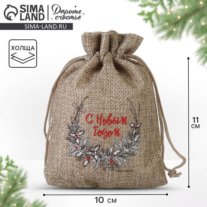 Мешочек подарочный с термонаклейкой «С праздником», 10 х 14 см +/- 1.5 см