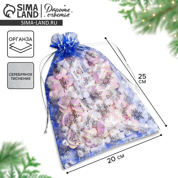 Мешочек подарочный новогодний органза «Снежинки», 20 х 30 см +/- 1.5 см
