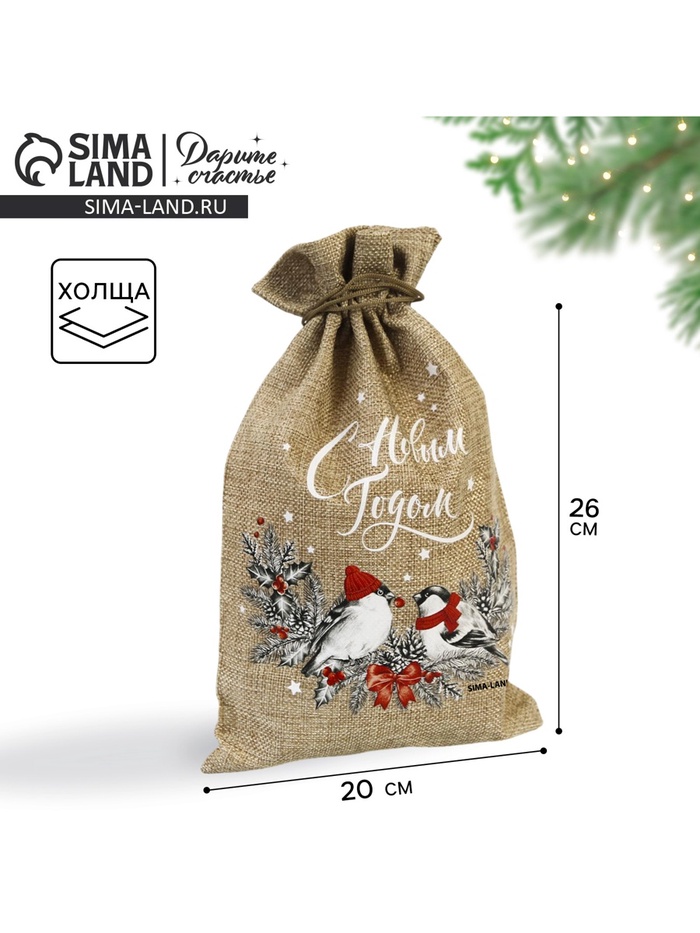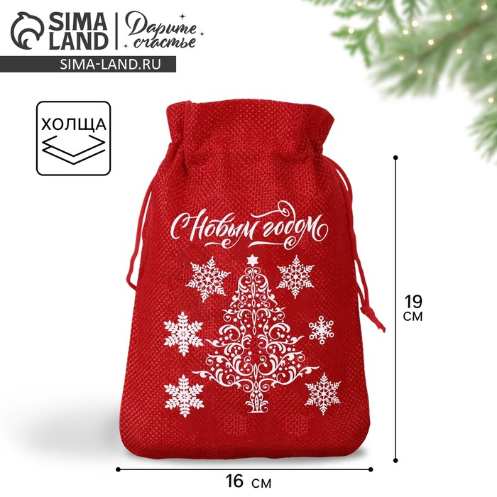 Мешочек подарочный с термонаклейкой «С Новым годом», 20 х 30 см +/- 1.5 см