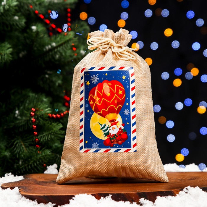 Мешок подарочный новогодний с термонаклейкой «Дед Мороз», 16×24 см