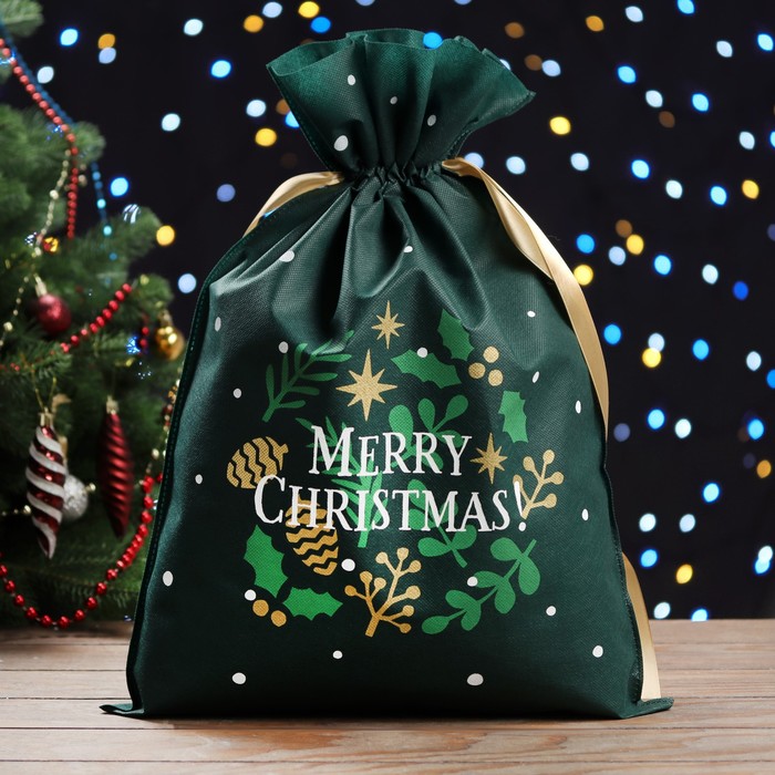 Мешок подарочный новогодний «Волшебный лес» зелёный, 30×45 см