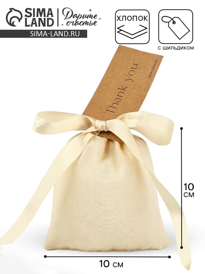 Мешочек подарочный из хлопка «Спасибо», 10 х 12 см +/- 1.5 см