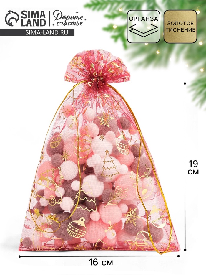 Мешочек подарочный органза «Новогодние игрушки», 16 х 24 см +/- 1.5 см