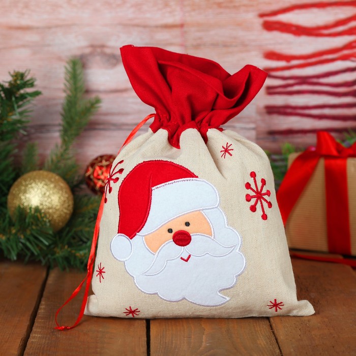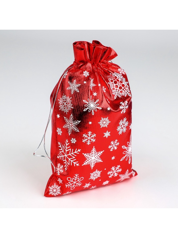 Мешок новогодний для подарков «Дед Мороз и снежинки», на завязках, 29 × 22 см
