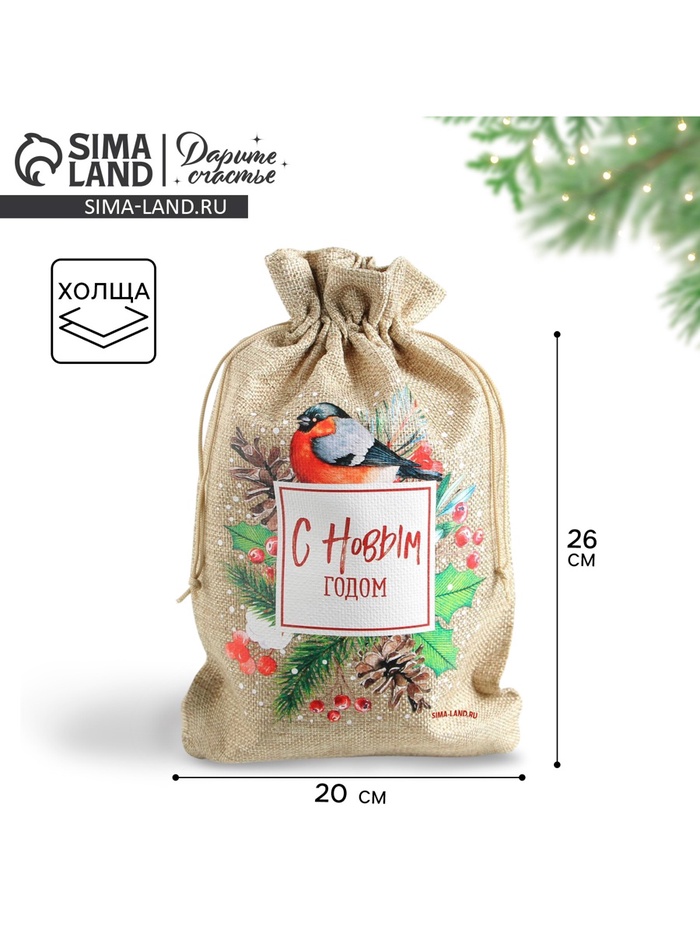 Мешочек подарочный с термонаклейкой «Снегирь», 20 х 30 см +/- 1.5 см