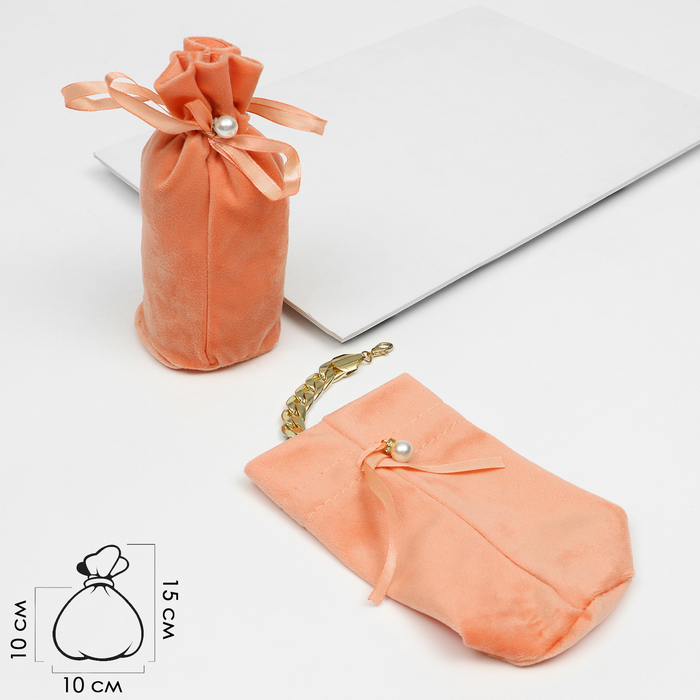 Мешочек бархатный с бусиной, 10×15 см, розовый