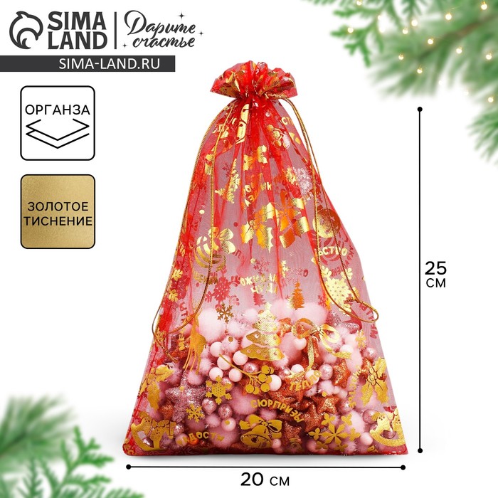 Мешочек подарочный органза «Новогодние игрушки», 20×30 см ± 1.5 см