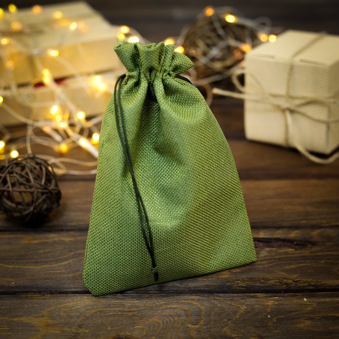 Мешочек подарочный из холщи, зелёный, 15×21 см