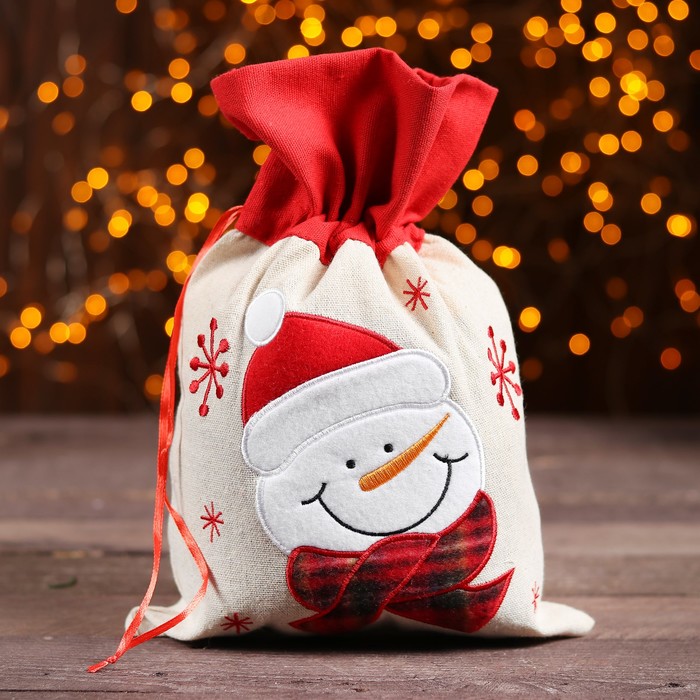 Мешок новогодний для подарков «Снеговичок и снежинки», 29 × 22 см