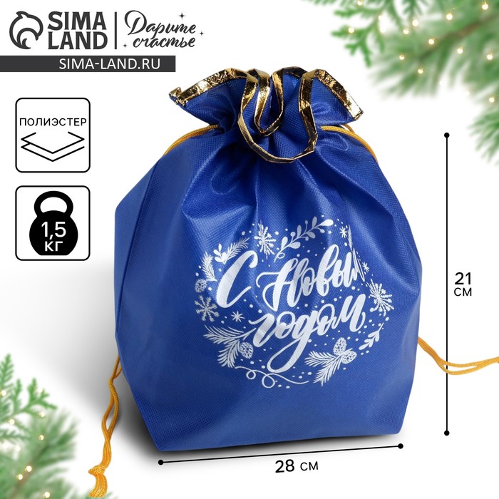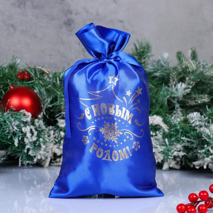 Мешок «С новым годом!», атлас, с завязками, синий, 20×30 см