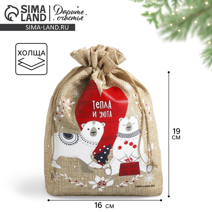 Мешочек подарочный с термонаклейкой «Тепла и уюта», 16 х 24 см +/- 1.5 см