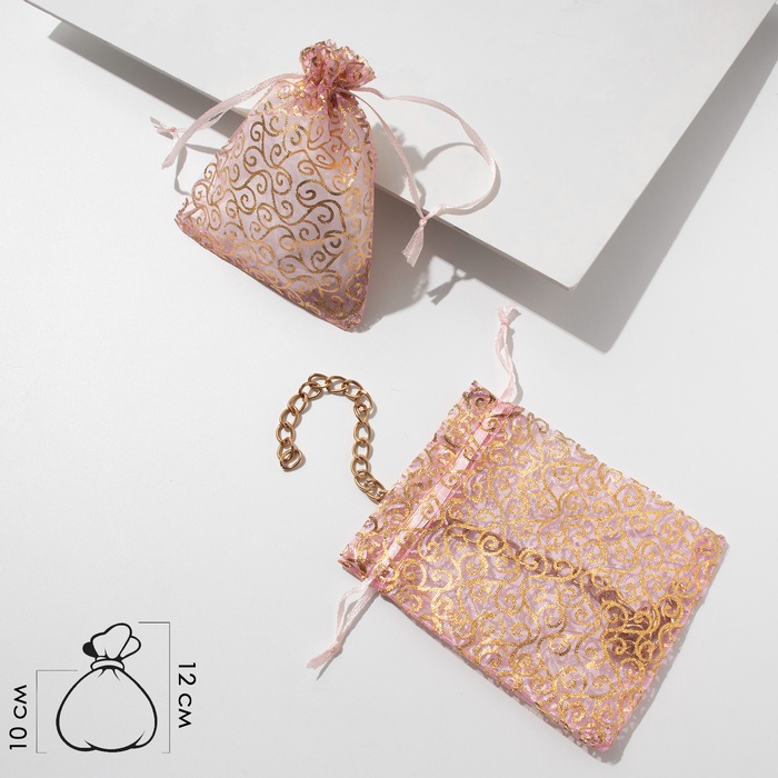 Мешочек подарочный «Завитки» 10×12, розовый с золотом