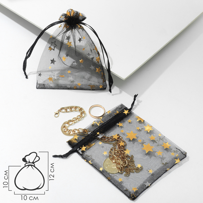 Мешочек подарочный «Звёздный дождь», 10×12, цвет чёрный с золотом