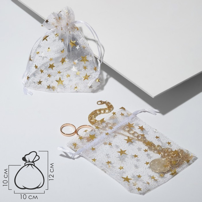 Мешочек подарочный «Звёздочки» маленькие, 10×12, цвет белый с золотом