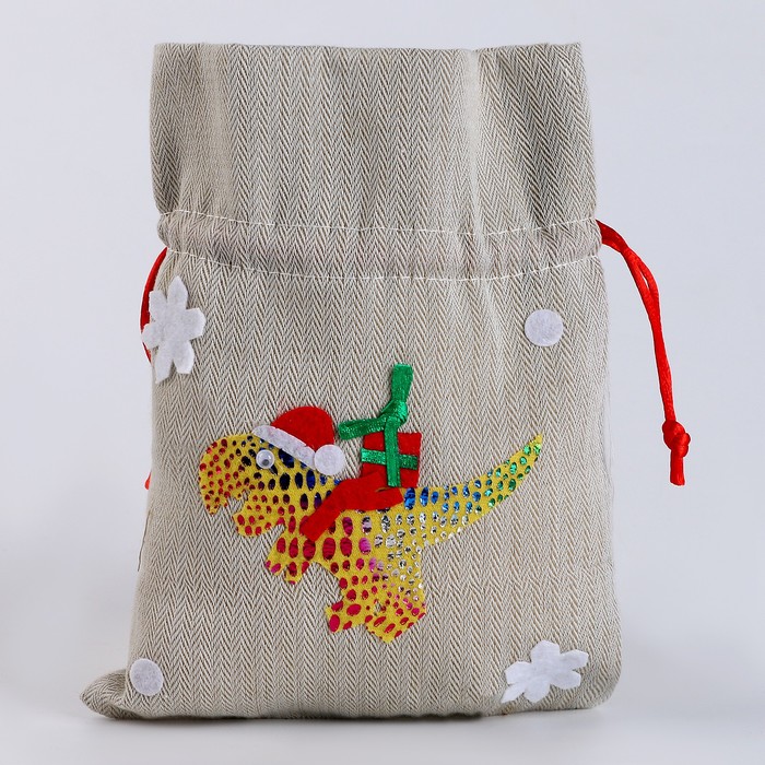 Мешок новогодний для подарков «Динозавр с подарками», 19 × 14 см, МИКС
