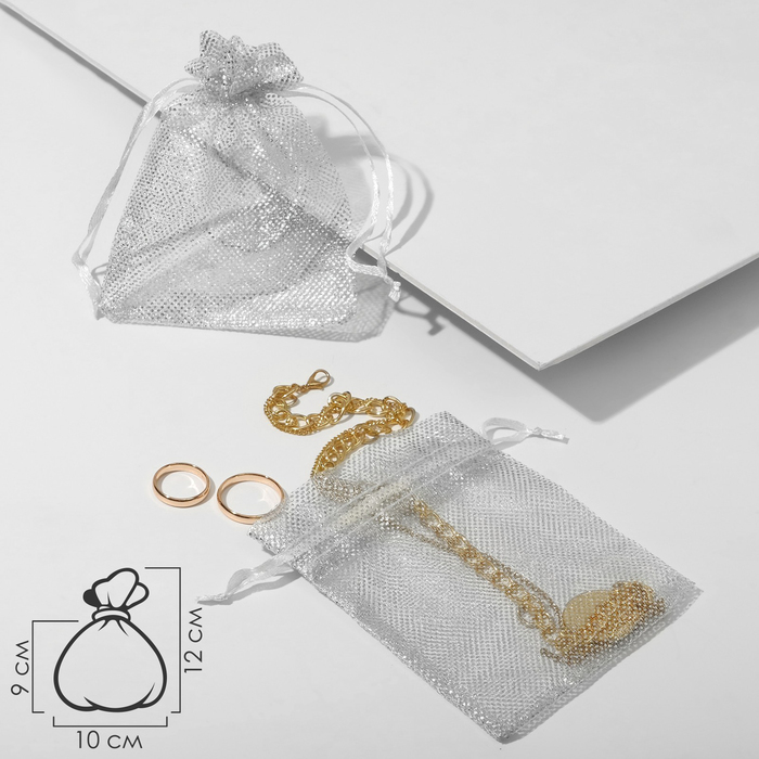 Мешочек подарочный «Тиснение», 10×12 см ( + - 1 см), бело-серебристый