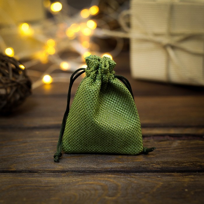 Мешочек подарочный из холщи, зелёный, 7 х 9 см