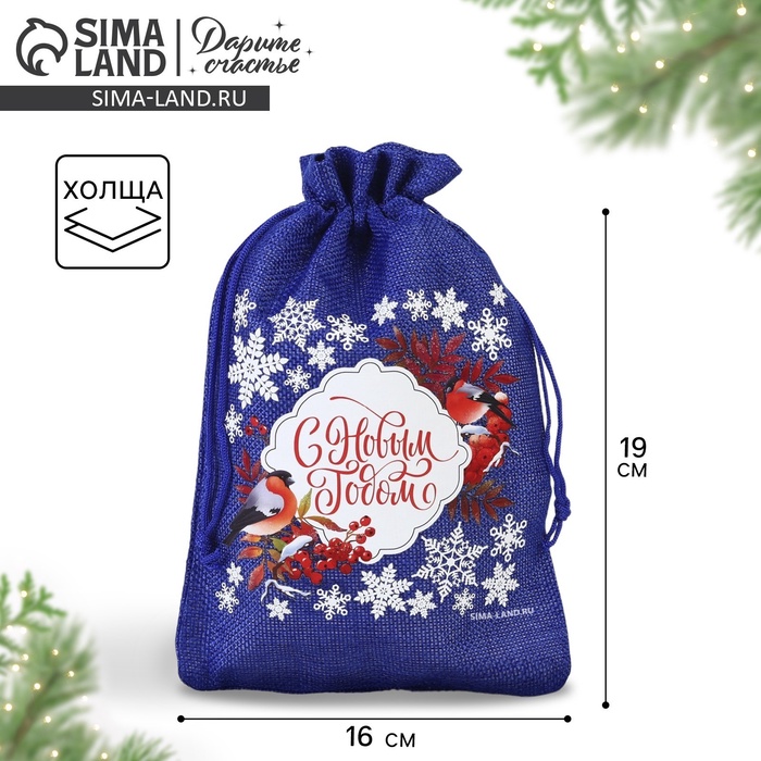 Мешочек подарочный с термонаклейкой «Рябина на снегу», 16 х 24 см +/- 1.5 см