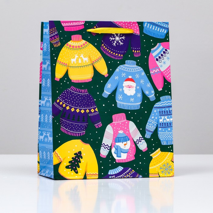 Пакет подарочный новогодний «Тёплый свитер», 26×32×12 см