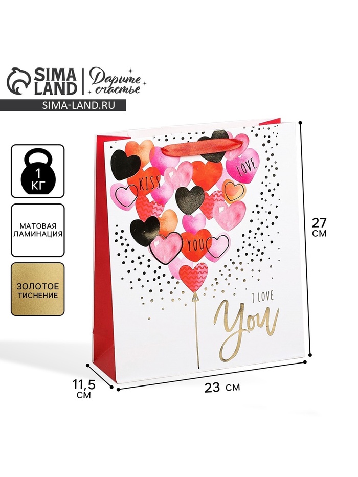 Пакет подарочный ламинированный, упаковка, I love you, с тиснением, ML 23 х 27 х 11.5 см