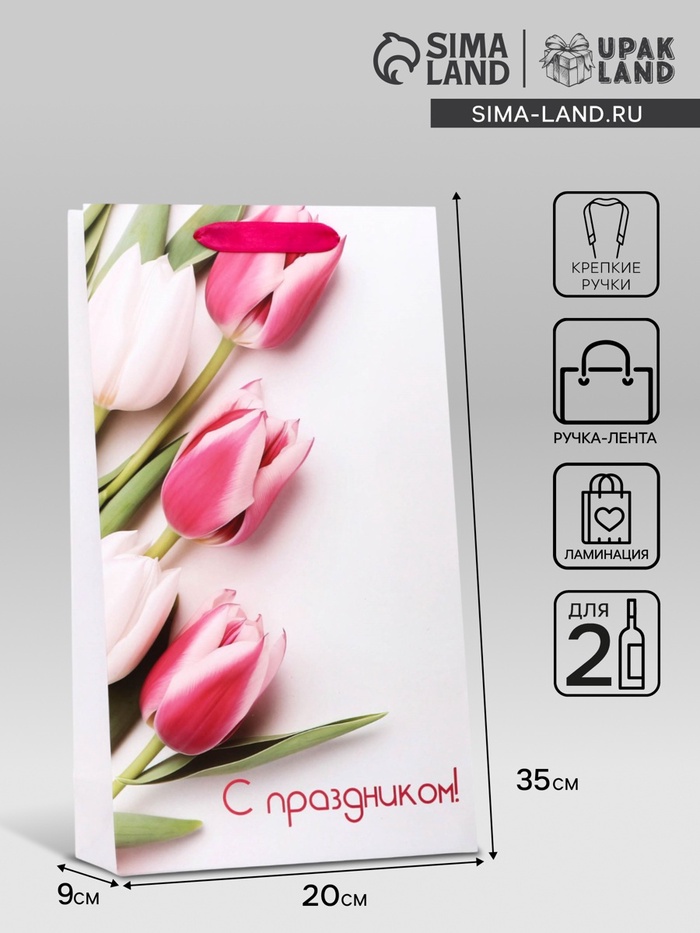 Пакет подарочный ламинированный под две бутылки «С праздником!», 35×20×9 см